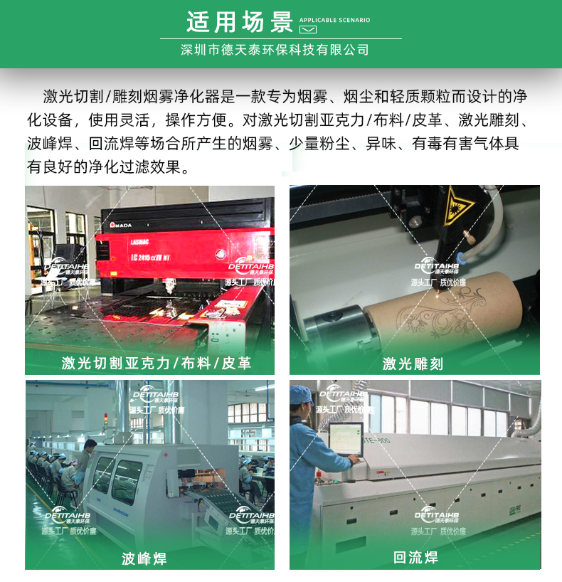 應用領(lǐng)域:激光切割、雕刻、錫爐、波峰焊、回流焊等煙塵異味處理。